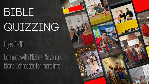 One of the first commandments given to parents is to teach their children the word of God. Bible Quizzing is a ministry that turns this command into a fun competition! With tournaments all around Colorado and the U.S., your child will have a blast memorizing the Bible and answering questions about the verses they learn. Each year is a new scripture study, so the longer your child participates, the more they will learn about the Bible! This ministry is a great way to "train up your child in the way they should go." Proverbs 22:6